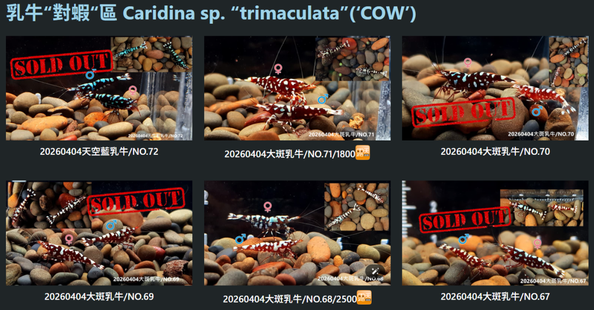 20260404:<上架>大斑、天空藍乳牛對蝦上架