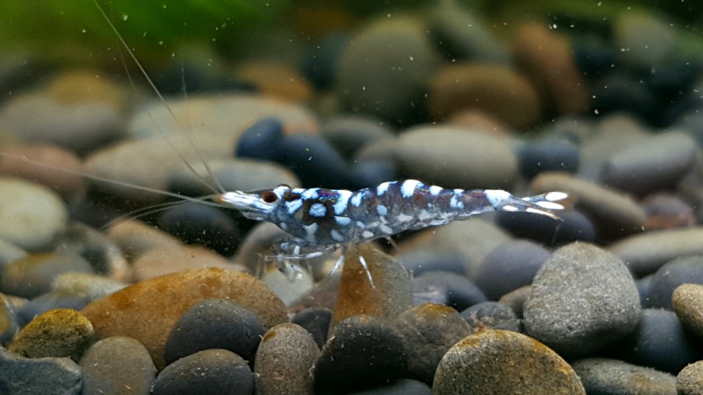 最近,在蘇拉維西乳牛蝦缸中發現了一隻不尋常的公乳牛蝦(Caridina sp. “trimaculata”)。這隻蝦的體色不像正常的鮮紅或暗紅,而更接近藍體白襪蝦(Caridina dennerli ‘Gost’)的藍色。這引發了我們對這種變異的興趣,並希望能進一步探索及繁殖這種可能具有特殊性狀的蝦。