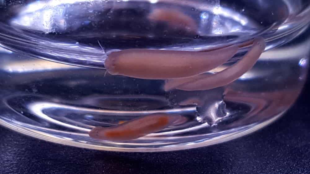 發現死掉的蝦子後應立即移除,這是非常重要的,以避免變成渦蟲的大餐。飼料的餵食量應以半天內可以吃完為原則。如果下一次餵食時發現有殘餌,應停餵一天或兩天,並在下次餵食時減少一半的量。
