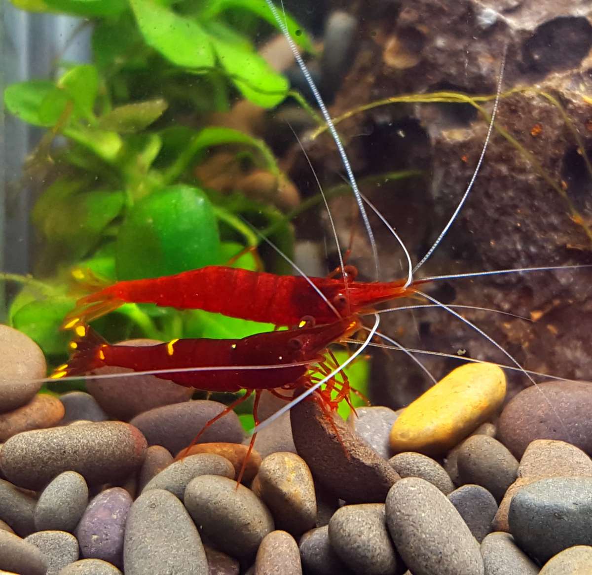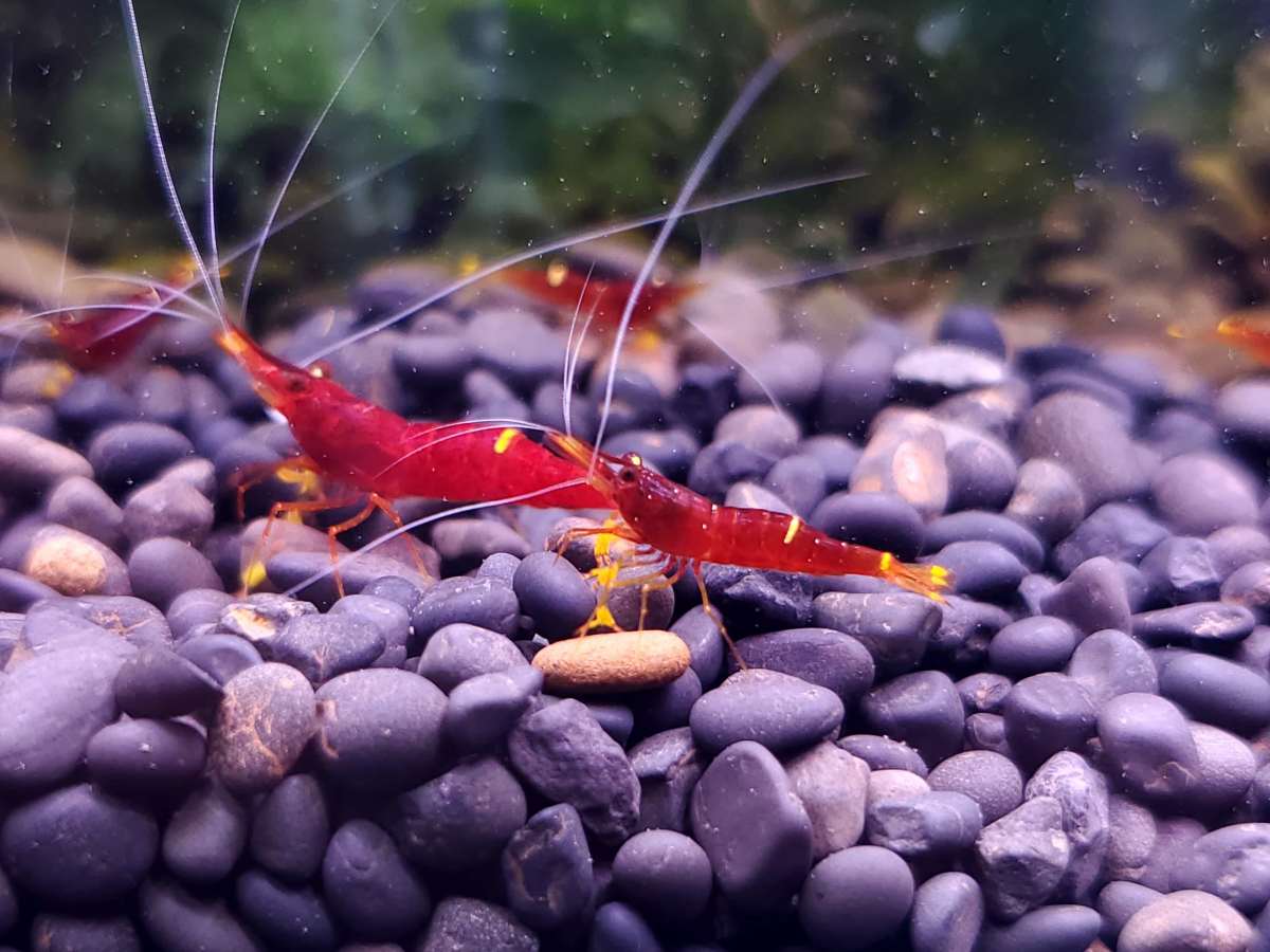 2、雜交蝦的腿色偏紅,而原種蝦偏黃。