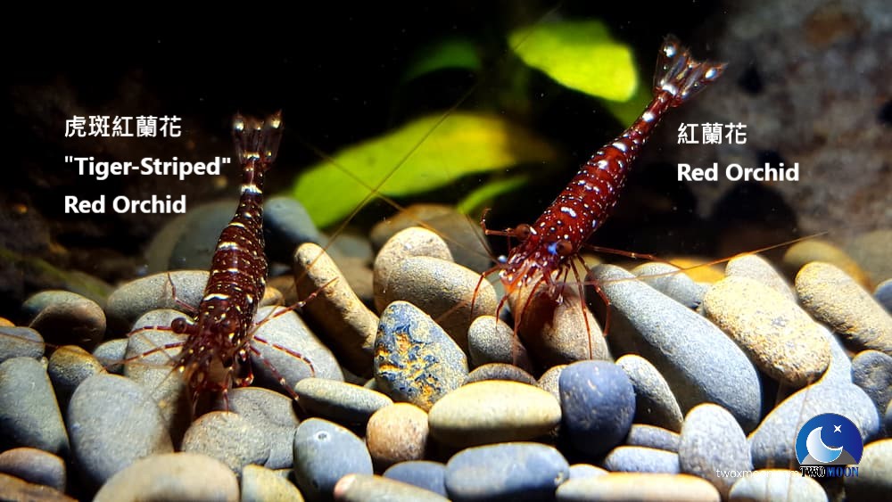 大約在 2016 年,我們所取得的野生紅蘭花蝦中混雜了兩種相近的花色,並均以紅蘭花蝦(Red Orchid)的名義出口。因此,無法確定是否為不同蝦種混雜,還是屬於同一種蝦的多樣性表現。這兩種蝦從一開始就被混養,其後代也表現出兩種不同的型態,或是接近的混種特徵。一直以來,我們因此認為這是同一種蝦,但擁有兩種不同的表現型,這一點在我們對紅蘭花蝦的簡述中也有提到。
